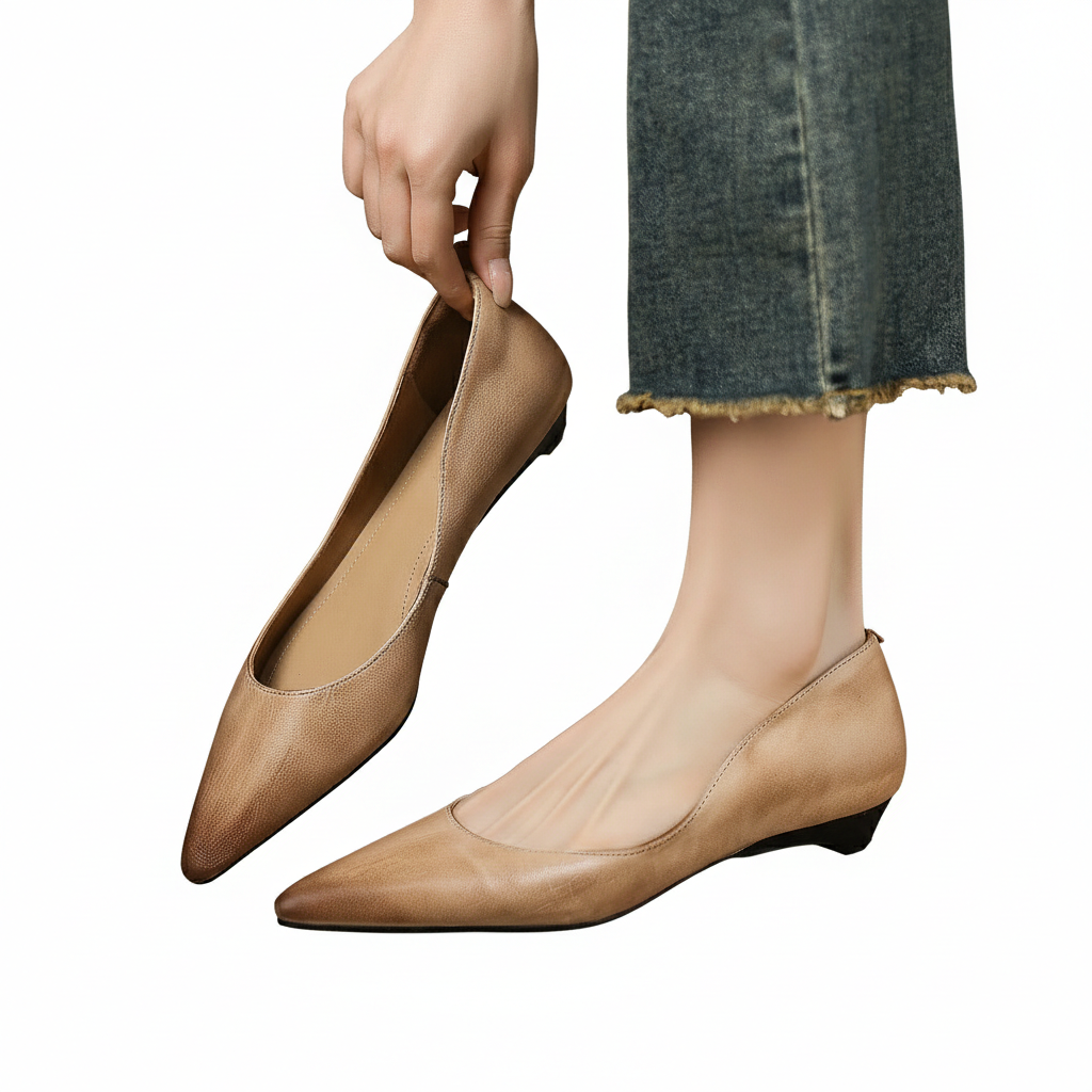 Hanna elegáns női lapos cipő – hegyes orrú, kényelmes, barna