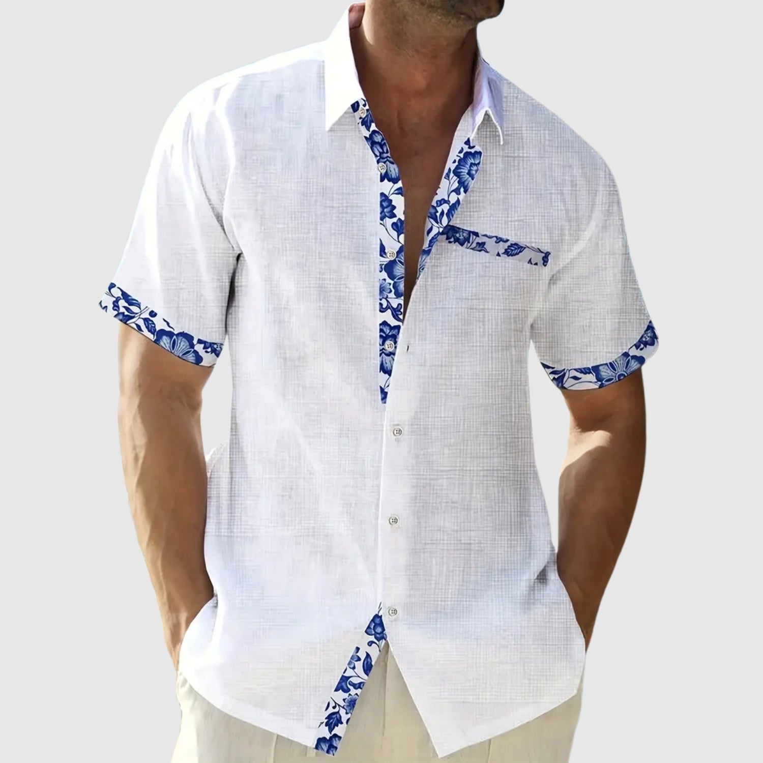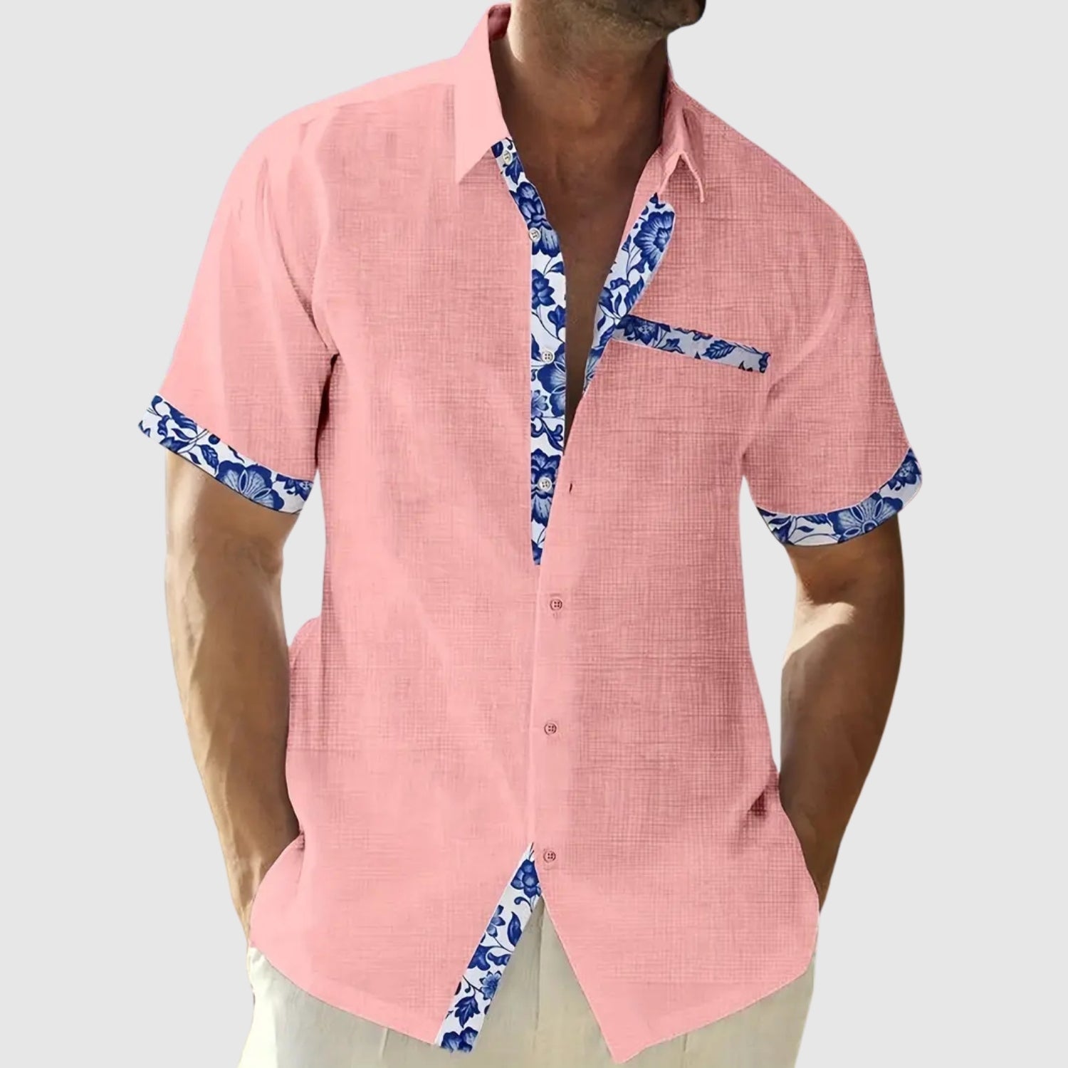 Ez a rövid ujjú ing, amit napos napokra terveztek, a frissességet és az eleganciát egy csipetnyi élettel ötvözi. A kontrasztos részletek, mint a gallér, zseb és ujjak, karakter adnak a laza megjelenésnek, amely ideális a strandra, avárosba vagy nyári utazásokra.