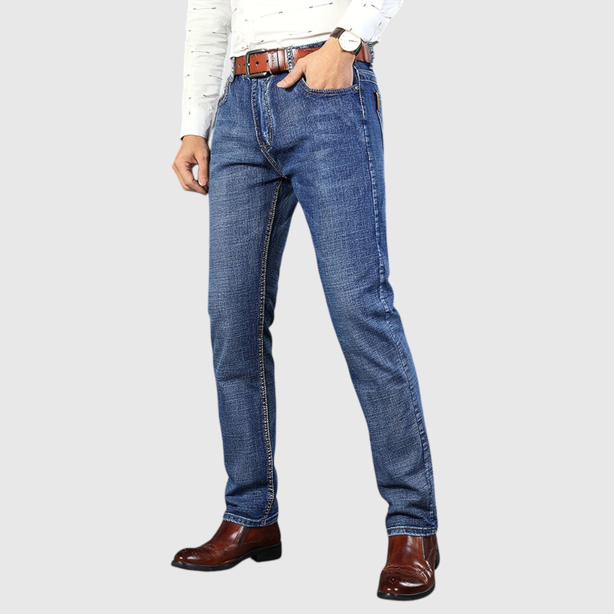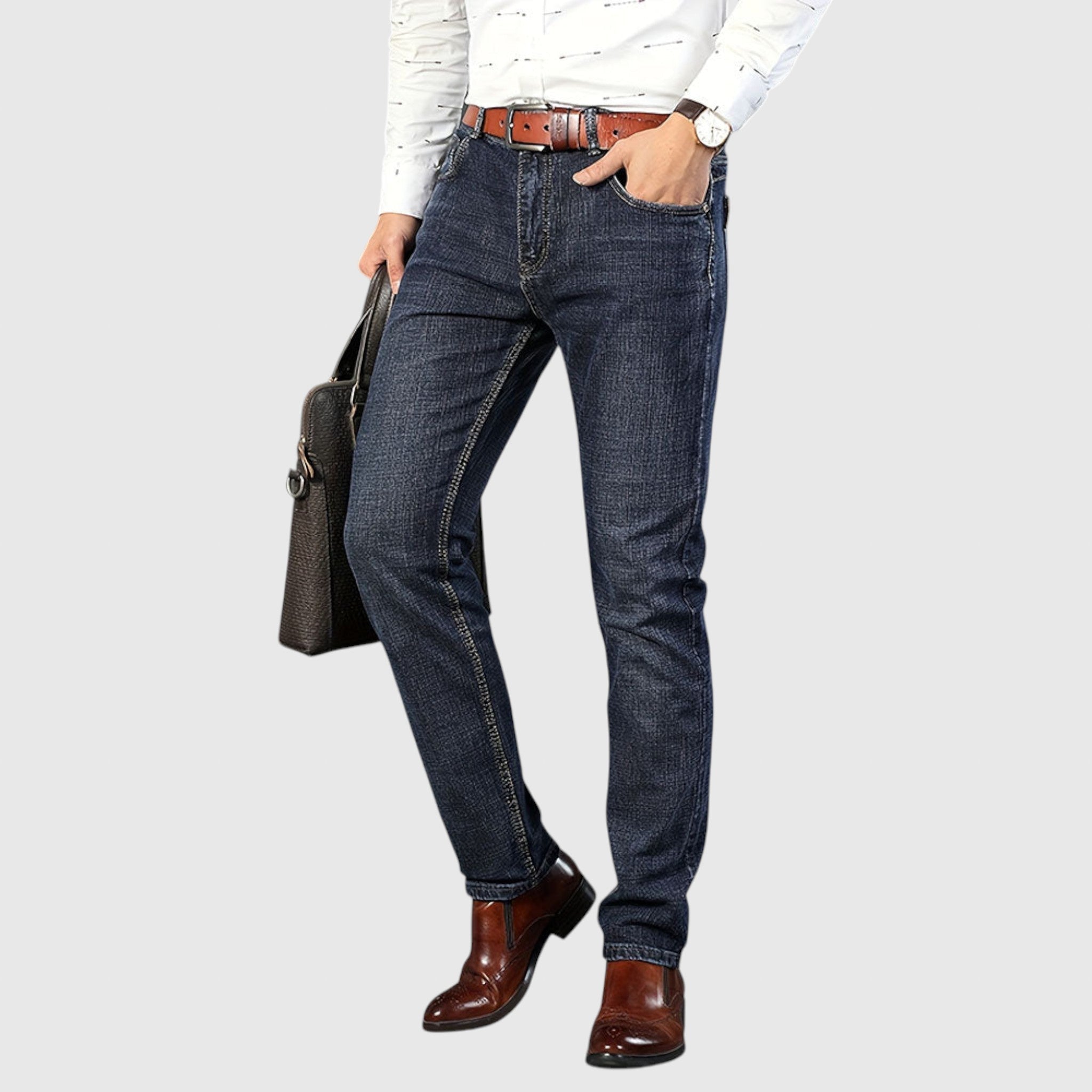 A Milan Farmer férfiak számára készült, akik értékelik a tartós megbízhatóságot modern árnyalatban. Prémium farmer anyagból készült, strukturált, de kényelmes viselettel rendelkezik - tökéletes mindennapi, informalis sétákra vagy elegáns inggel való kombinálásra.