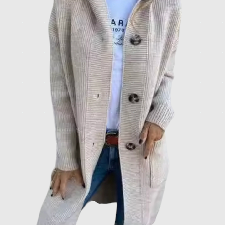 Gizel | Hosszú kötött kabát kapucnival