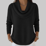 A hűvös őszi napokra tervezett Angeline finam meleget kínál elegáns eséssel. A puha kötött anyag szépen simul anélkül, hogy tapadna, a laza ejtett nyak tavol tartja a hideget felesleges uvagság nelkül, az ívelt is szegély pedig kényelmes fedést biztosít a has és a csípő területén — letisztult, meghitt és könnyen viselet.
