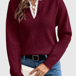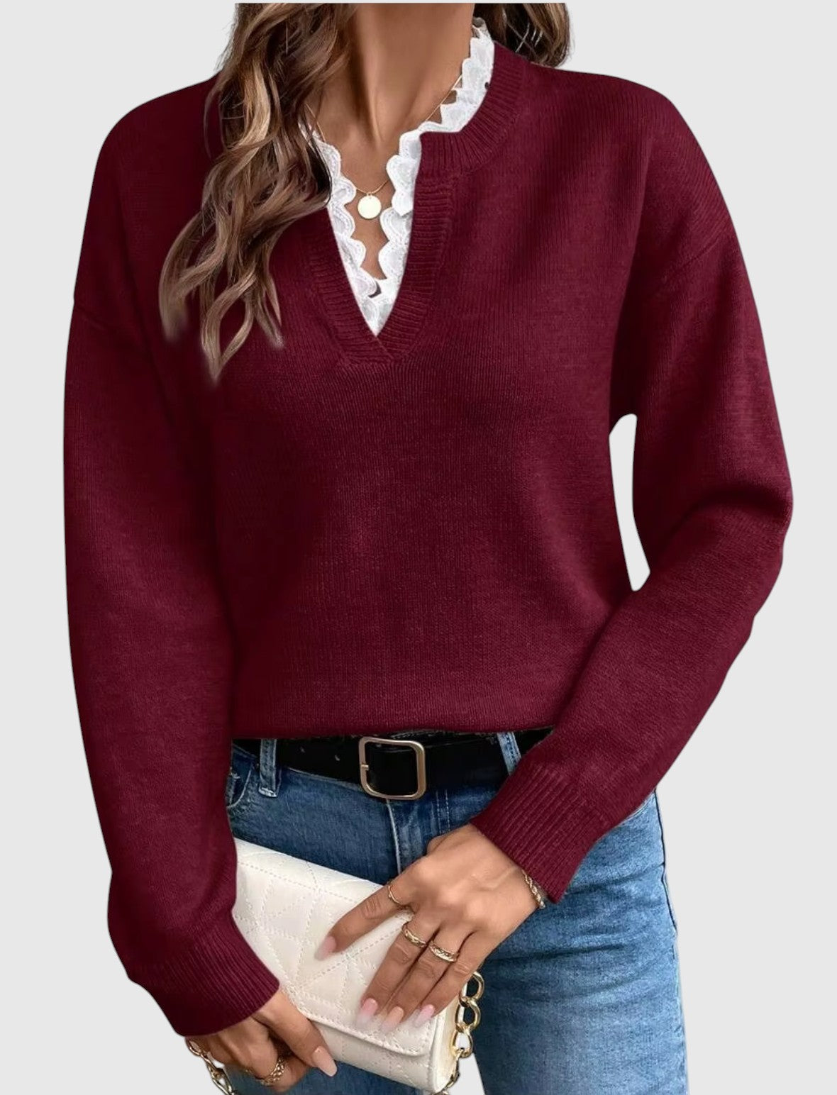 Karolina | Elegáns csipkés V-nyakú pulóver
